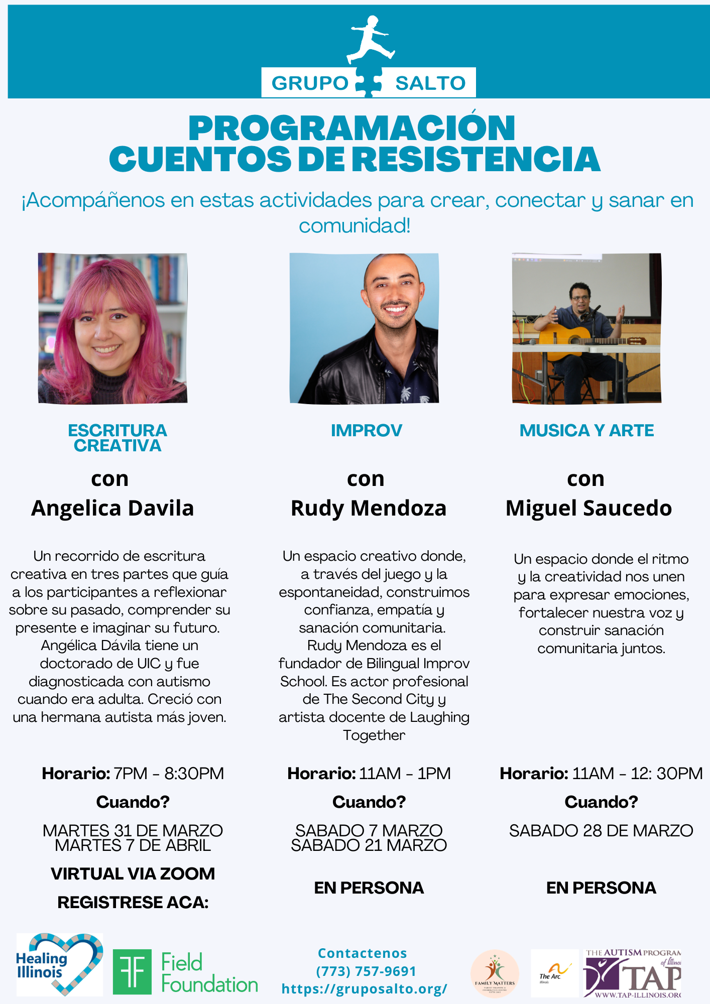 Grupo Salto was founded as a not-for-profit organization in 2007 by parents and Latino personnel of the Family Clinic Disability and Human Development Department at UIC to support autistic children and their families who required unique services. Today, Grupo Salto continues its mission as an independent entity.